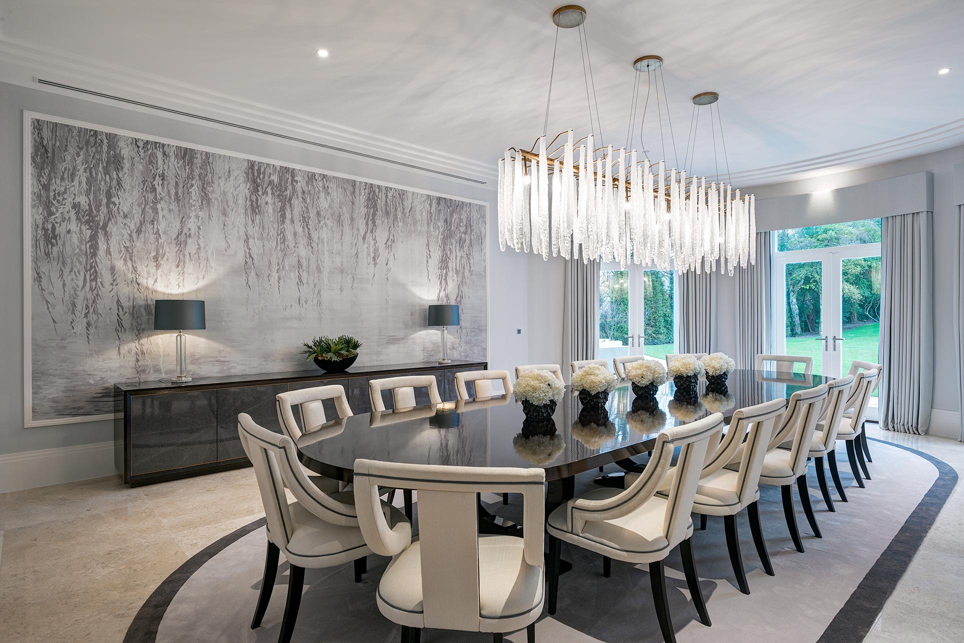 An additional feature of this stunning new property is the mature and secluded landscaped gardens, all set in circa 1.4 acres. Titlarks House will be perfect for summer soirees, especially when considering the second commercial kitchen inside. The two self-contained staff suites above have independent external access and the detached garage has space for four cars.