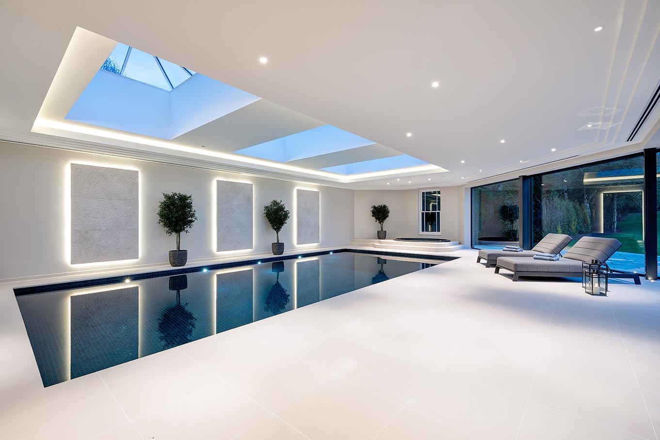 Titlarks House boasts an envy-inducing leisure suite, complete with a spa, sauna, steam room and treatment room. While the 10m x 5m indoor swimming pool with glass sky lights is protected from the elements during the winter months, the complex has a full wall of fold back glass doors, allowing for the most exclusive of indoor/outdoor living during the warmer months.